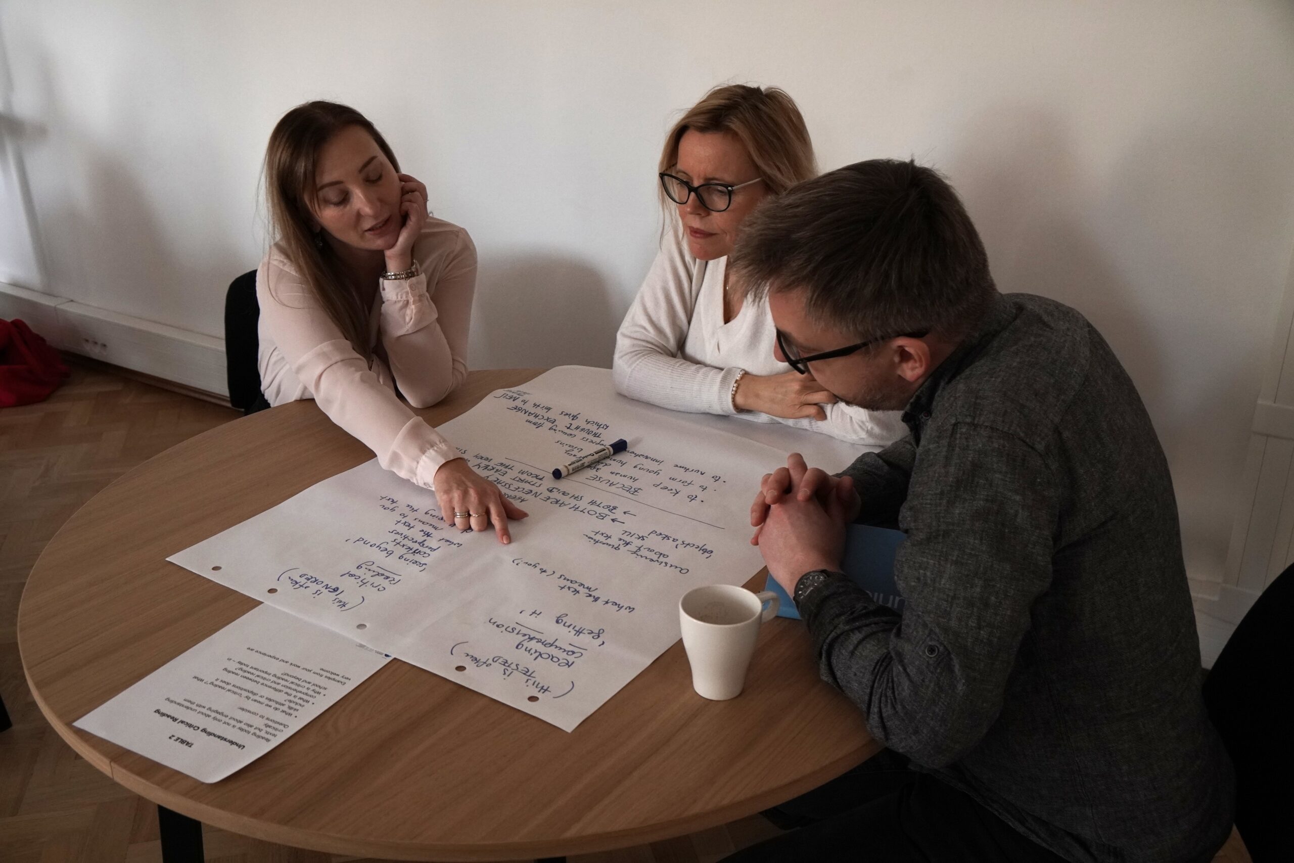 Najważniejsze wnioski z dyskusji zostały zapisane na plakatach roboczych przy stolikach oraz na indywidualnych kartach refleksji uczestników („hot takes”).